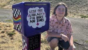 CGCC Library Assistant Danny Jacobsen won Columbia Gorge News' contest to upcycle a newspaper stand into a Little Library