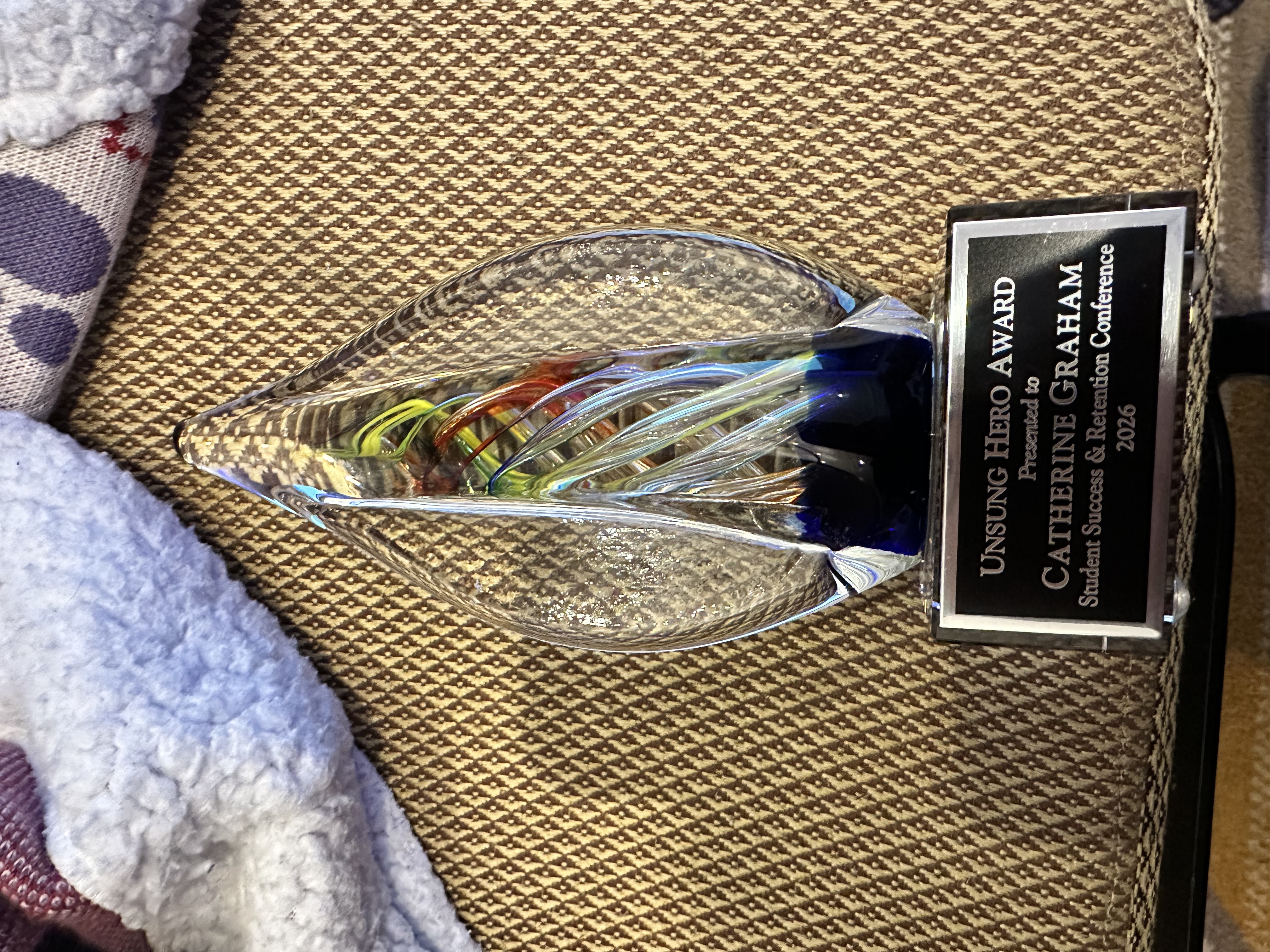 Cat Graham, CGCC’s Registrar, received the Unsung Hero Award at the 2026 Student Success and Retention Conference in Portland. Her quiet, systems-level leadership focuses on removing structural barriers for students. In a role that is largely behind the scenes yet touches nearly every student, she is known for precision, reliability, and student-centered decision-making. Cat collaborates across departments to ensure compliance while protecting students from unintended harm. By moving paper-based processes to accessible online workflows and automating degree awarding, she has improved student persistence and completion and strengthened both the student experience and institutional effectiveness at CGCC.