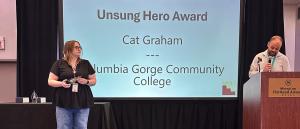 Cat Graham, CGCC’s Registrar, received the Unsung Hero Award at the 2026 Student Success and Retention Conference in Portland. Her quiet, systems-level leadership focuses on removing structural barriers for students. In a role that is largely behind the scenes yet touches nearly every student, she is known for precision, reliability, and student-centered decision-making. Cat collaborates across departments to ensure compliance while protecting students from unintended harm. By moving paper-based processes to accessible online workflows and automating degree awarding, she has improved student persistence and completion and strengthened both the student experience and institutional effectiveness at CGCC.